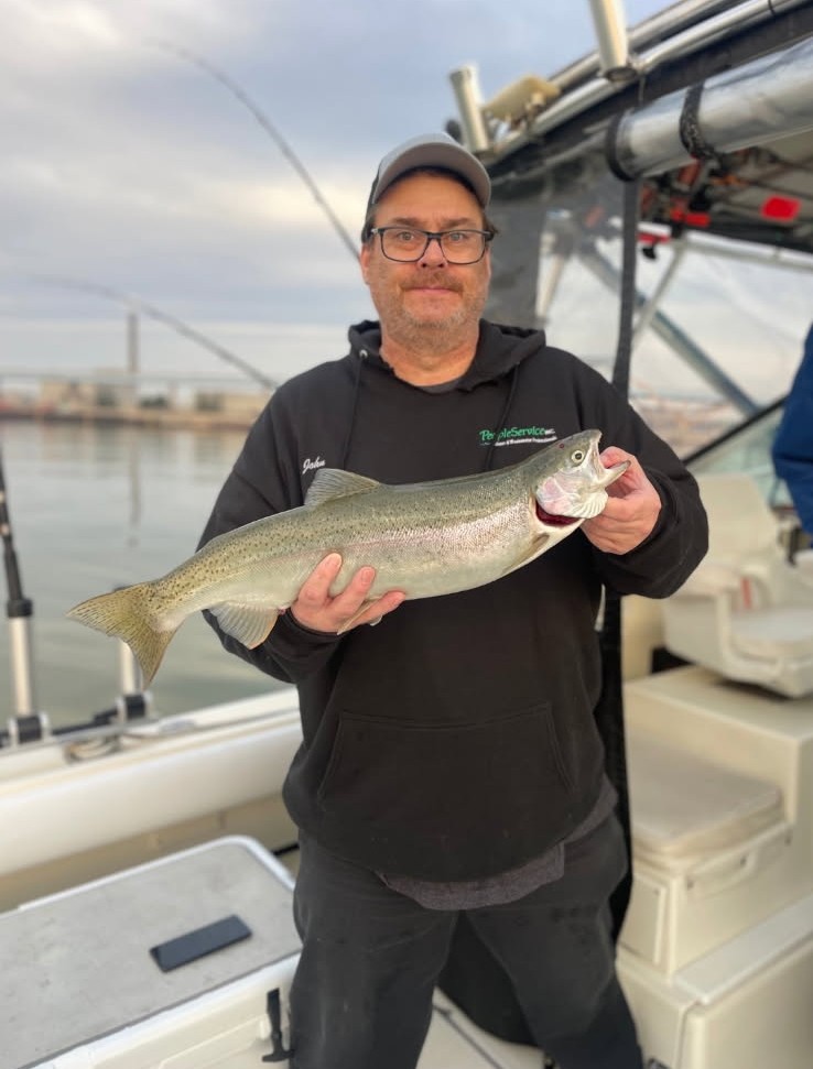 Mid February and we are getting closer to the 2026 Lake Michigan charter fishing season. We are still ice fishing but recent record highs, including a 60 degree day will bring this to an end soon. But for now some good Brown trout and Steelhead are being caught through the ice in Milwaukee, Racine and Kenosha harbors. We have talked about Chinook salmon, Lake trout and Coho salmon in the last three reports. It is now time to talk about Rainbow trout "Steelhead". We call this fish a 50/50 fish because it seams 50% of the time they jump off the hook. Steelhead are known for jumping several feet in the air when that get hooked. They are one of the fastest swimming fish in the lake. We have had them hit a lure 90 feet down and be jumping on the surface before we can get to the rod. They are a fun fish to catch and very good on the grill. Every year is different for how many Steelhead we will catch in a season. In 2025 we thought it would be a great year for catching them but Steelhead usually make up 6 to 8 percent of the catch for a season. Over the last decade are best percentage to catch was 15%.