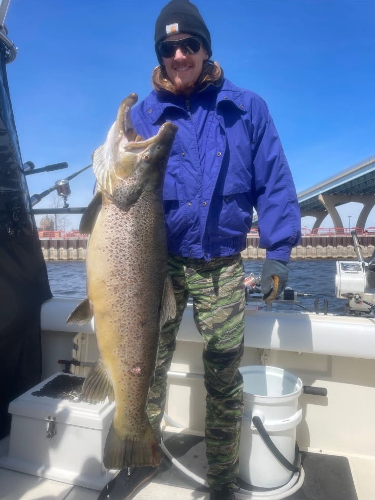 We put our boat in early to target this fish and there is a demand for it. We are fishing the Milwaukee harbor, river mouth and shoreline to target them. Brown trout will winter in the harbor. This makes them a great target in early spring. Once the alewife schools show up in mid April and that usually shuts the bite down. After the water warms up Brown trout tend to hang out along the shoreline. If the water starts to warm up too much they will move out to deeper water. But for the most part they are spread out along the shoreline for most of the season. There are times during the summer when the water cools down and Brown trout will head back into the harbor for warmer water. But this is not a bite we count on.