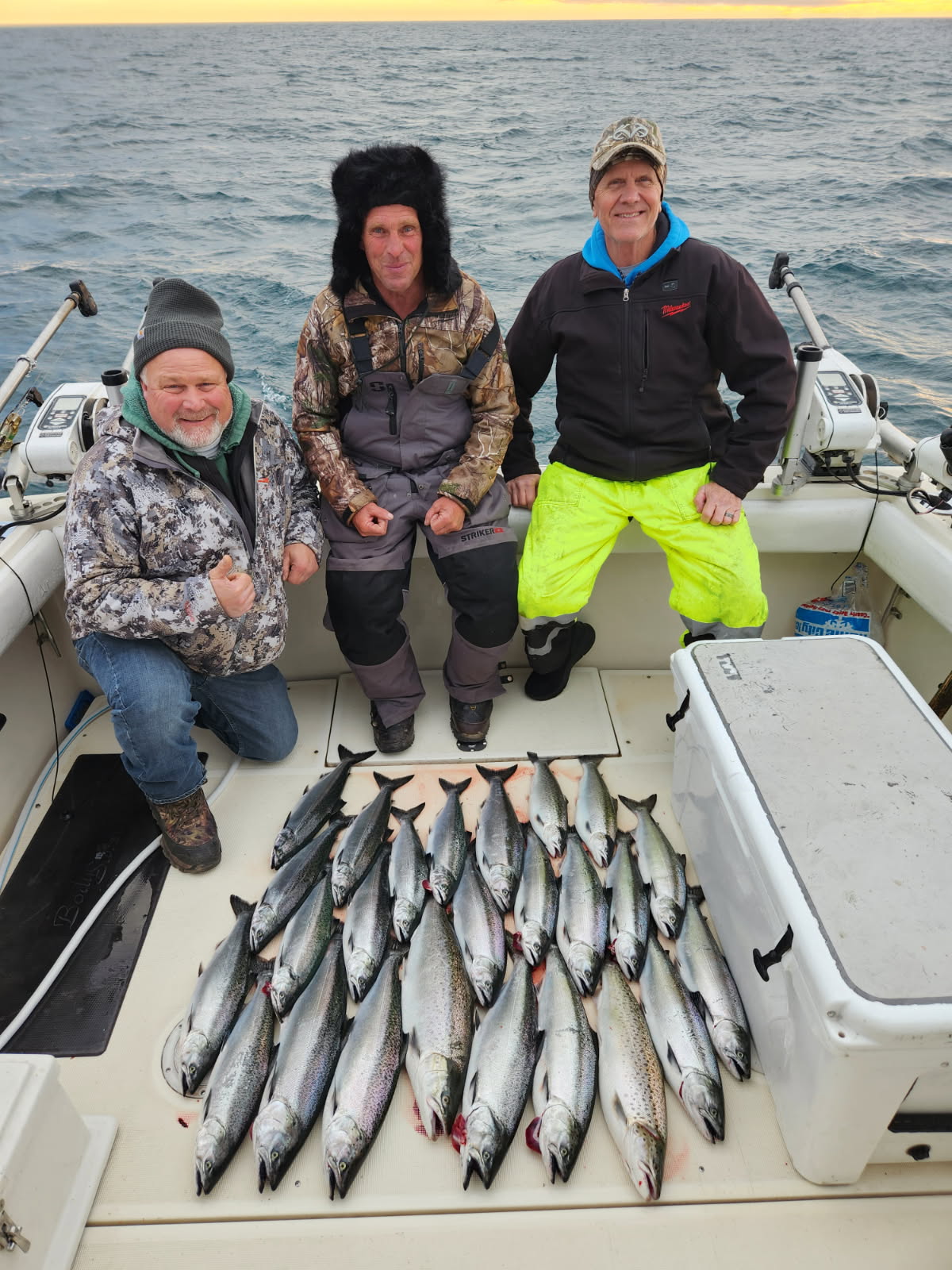 We are booking for 2026 and our late March trips are almost all booked up. We run trips the last week of March and first two weeks of April for Brown trout. This has become a hot time to book. But we are booking for the entire year and weekends go quick. Call Silver King Charters at 414-460-1467 to get in on what looks to be a good 2026 season for catching salmon and trout. Below are some pictures of our last several weeks in 2025. The first two pictures are of the last trip we did with friends in November. Collin and I caught the last ten fish in ten minutes. The last picture is a witch on a paddle board we saw coming in on Halloween from a trip.
