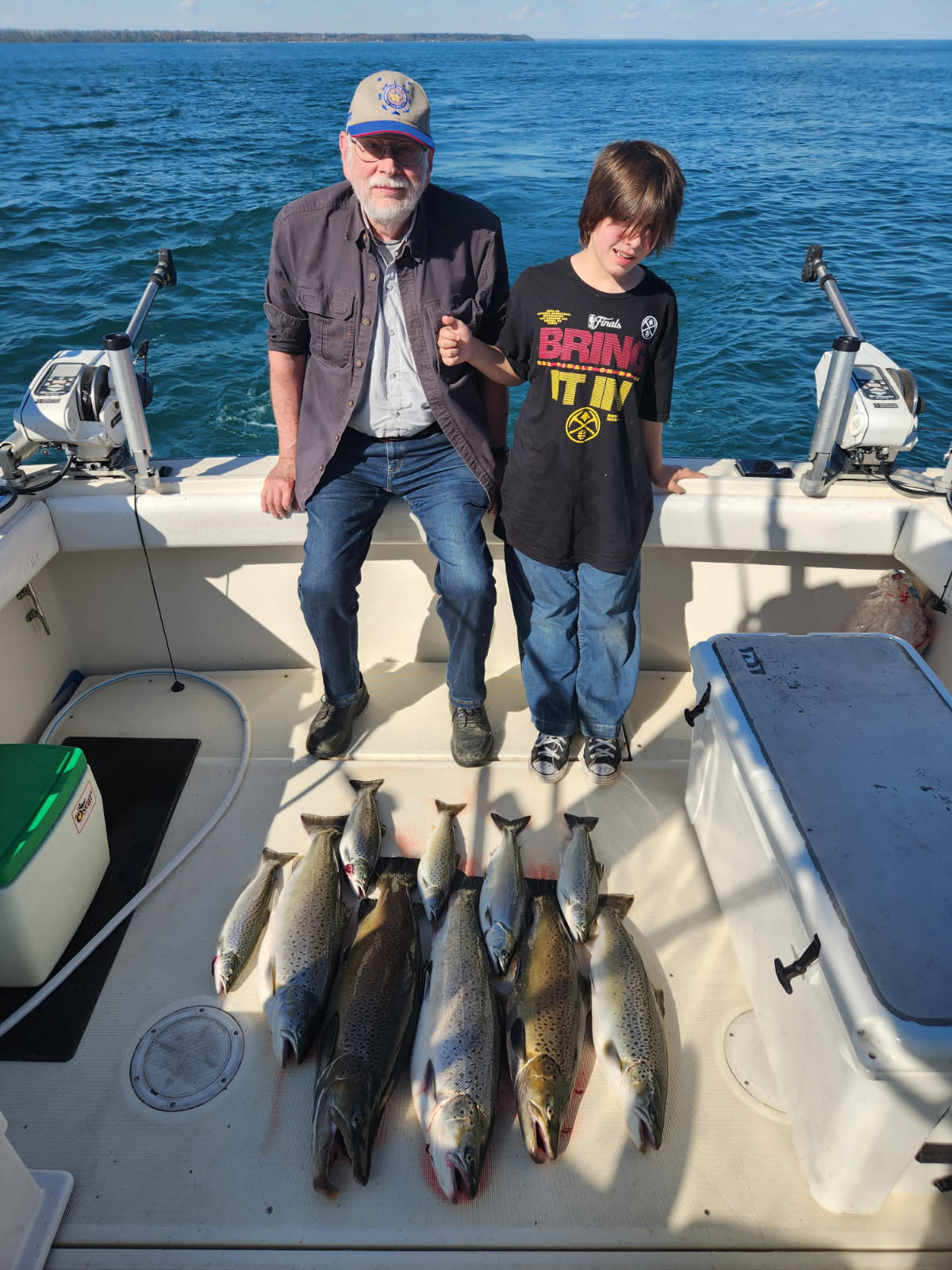 Our biggest fish caught per species were Chinook salmon at 27 pounds. This was also our biggest fish of 2025. We caught this fish in mid August in 50 feet of water. The mature Chinook salmon were down in size and averaged 15 pounds. Brown trout cam in at 23.5 pounds and this was the second biggest fish we boated. We also boated a 23, 22 and 21.5 pound Brown's. These came in at 3rd through 5th place for biggest of the year. Lake trout was 21 pounds. We had several Lake trout in the 15 to 19 pound range as well. Rainbow trout was 14.5 pounds. Coho salmon was 7.4 pounds. We caught a lot of Coho salmon and they were good size to start the spring but the average was about 5.5 pounds during the summer. The size of fish was down from the last several years but the fish were healthy and the catch rate stayed solid the entire year. This to me is a good trade off.