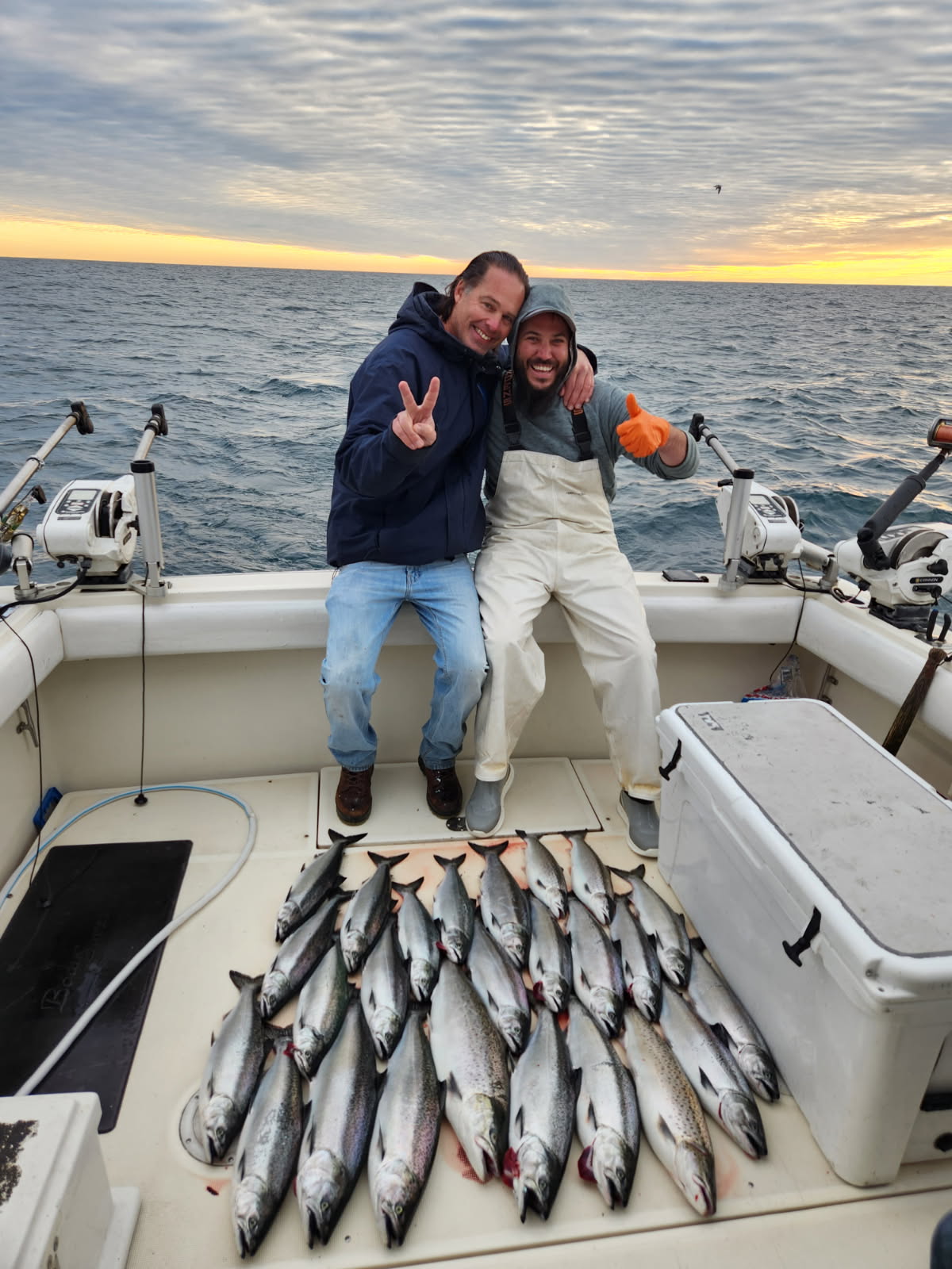 Well our season finished on November 7th when we puller the boat. The last couple weeks of October and the first week of November were nothing short of incredible. The best Chinook salmon fishing of 2025 and this bodes well for 2026. We caught two and three year old Chinook salmon but most were two year old. This year class for the most part eluded us this season and we were concerned about next year. We are not now. This was the best bite we have seen in years and we heard the same from down south. We also had a good bite on Brown trout near the end and we saw a lot of younger Brown trout and this also makes next spring look solid. We could not get out much due to strong winds and big waves on most of the days but when we did it was crazy good. The bite started in 120 to 150 feet of water but ant the end we were in 70 to 80 feet straight out of the North gap of the Milwaukee harbor. We worked a stretch from the Filtration plant to the Main Gap. There was a lot of bait and the bites cam from 30 to 60 feet down. There were a couple of trips that you only need to run three rods. When we pulled the surface temperature was 51 degrees and this was right to the bottom at 60 feet down. As of today the water was still 47 degrees and I bet they are still biting.
