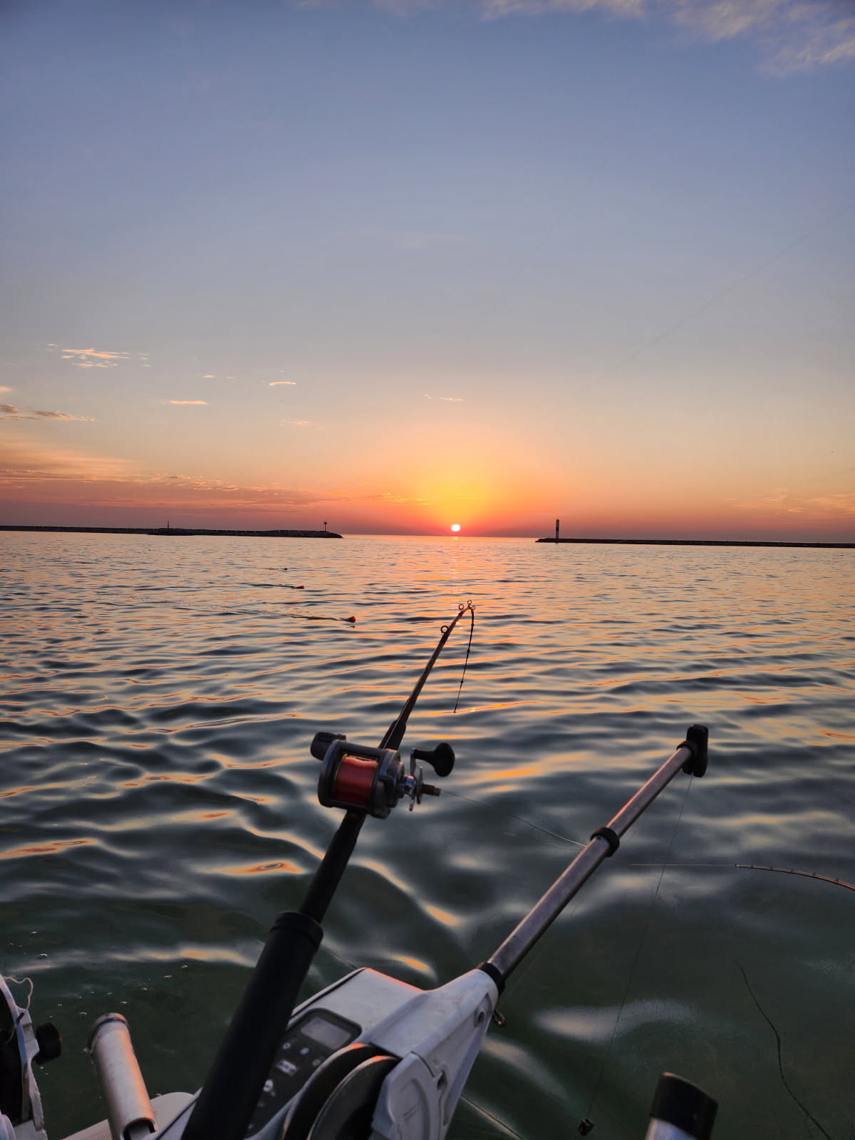 We expect another good year for Chinook salmon fishing and we are book for 2026. Weekends go quick and we also have a few spots open for Salmon-Rama this year. Call Silver King Charters at 414-460-1467 to get out on Lake Michigan and catch your King salmon. Below are a few pictures from ice fishing the harbors in December. The sunset is from Christmas day. I also included a picture of the boat in storage. We already have her waxed, painted, tuned up and oil changed. All the lead core and mono rods have been respooled. Hoping to have a fish in the boat the last week of March.